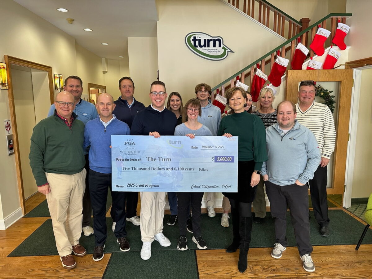 The Northern Ohio section of the PGA (NOPGA) leaders presented a check for $5,000 to The Turn this past December. We are proud of our long-time partnership with the NOPGA and are immensely grateful for their continued support. Their donation will help The Turn fund membership expenses, update essential equipment, and help us continue providing
